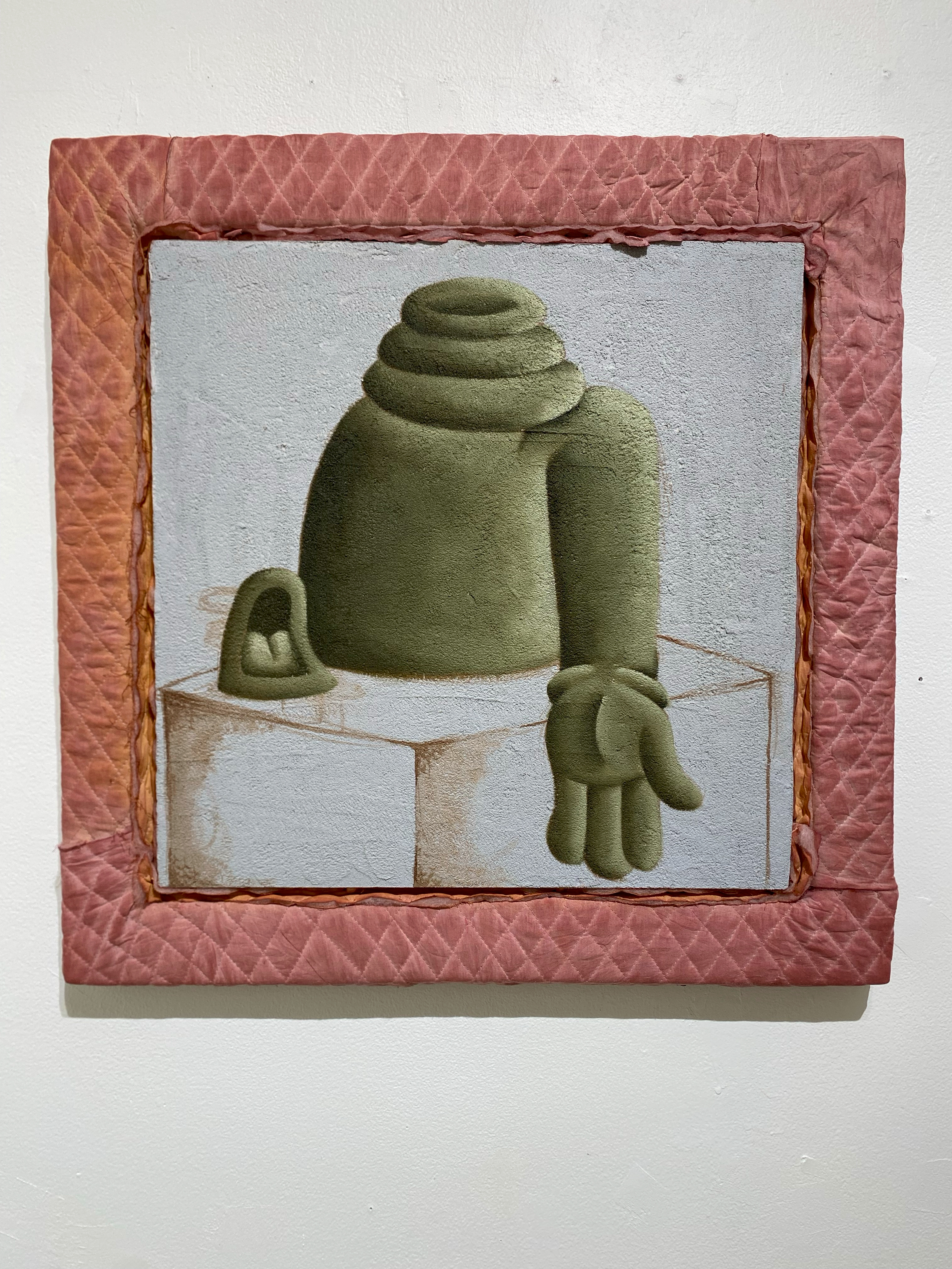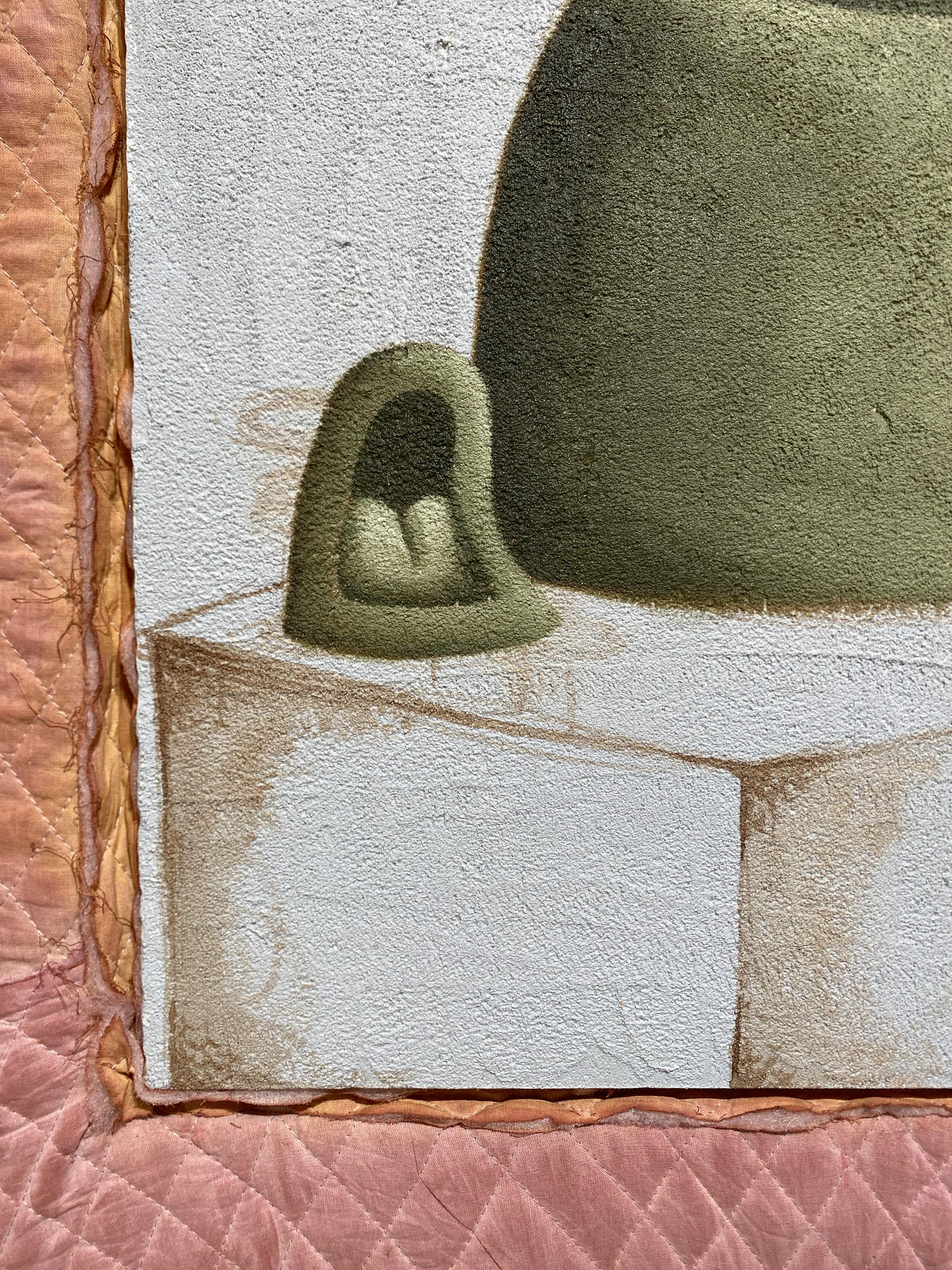 Oil paint, cement, dry wall, quilt, 21x21" ,2024